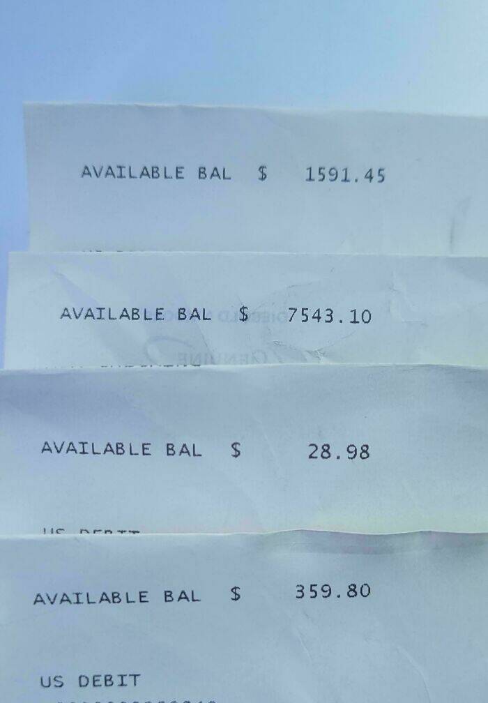 "Account Balances From People That Left Their Receipts On Top Of An ATM"