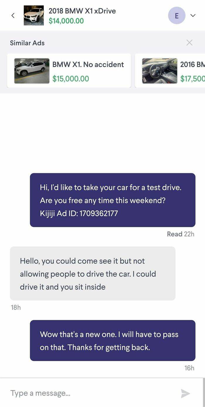 "Yes, You Can Drive The Car You're Selling To Me And That'll Convince Me To Buy It. (Kijiji = Canadian Craigslist)"