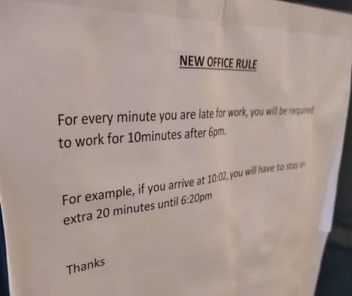 This person who came into work and found the new tardy policy:
