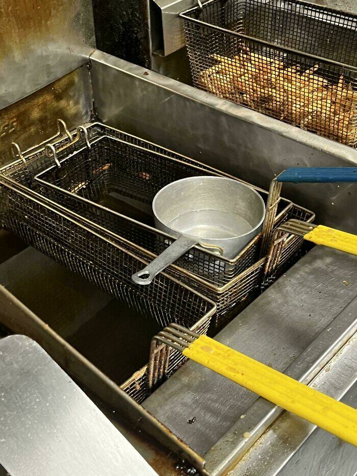 "Co-Worker Boiling Water In Deep Fryer"