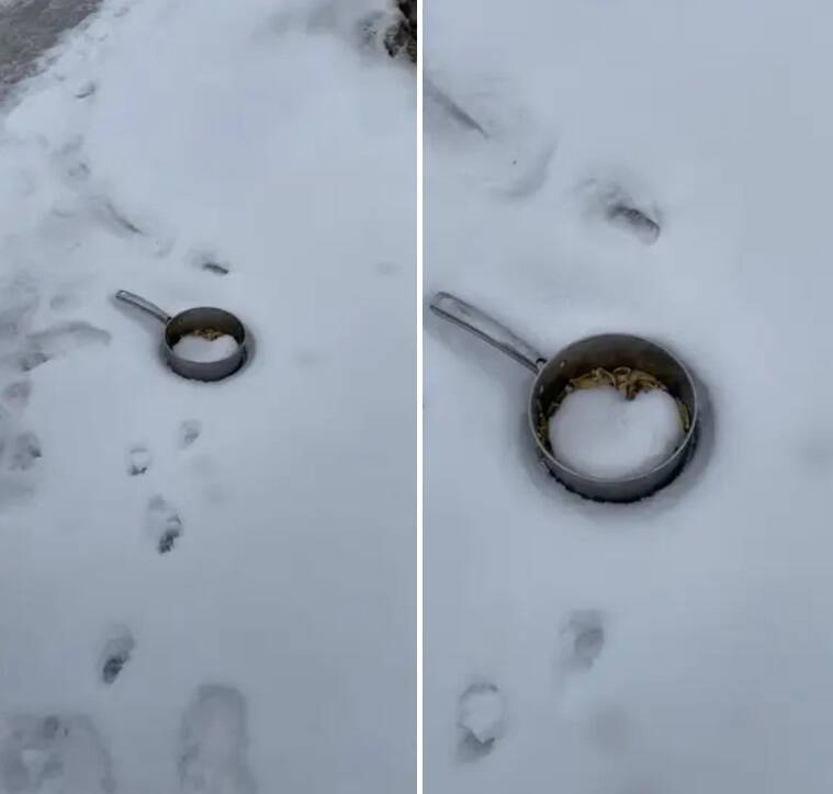 "Went for a walk and saw a lone pot of pasta in the snow":