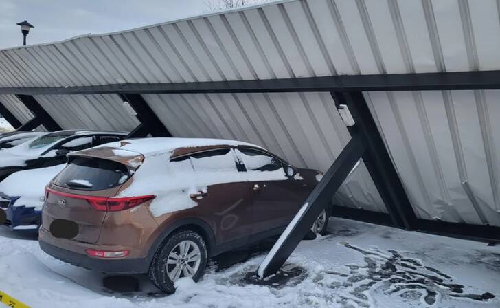 “My parking shelter collapsed under the weight of snow, but my car was untouched.”