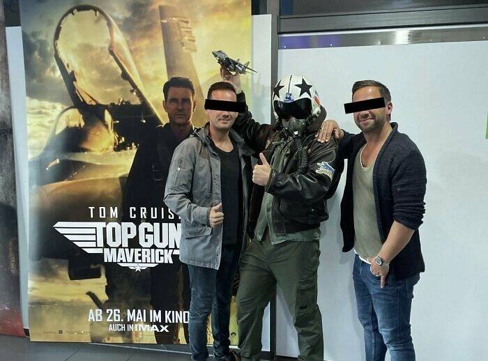 "Brought My Vf-2 Tomcat Helmet To The Movies. I Let Random People Take Pictures With Me. I Saluted Everyone Entering The Cinema With "Mam", "Sir". They Thought I'm Part Of The Promo Crew"