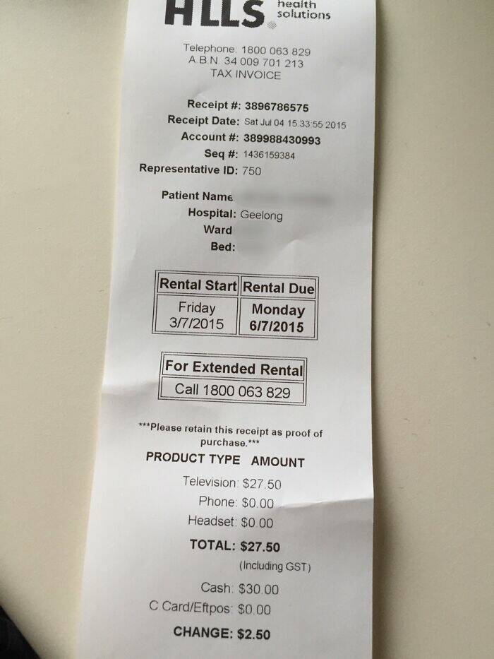 "The Horrible Cost Of A Four Day Hospital Stay In Australia. (TV Hire)"
