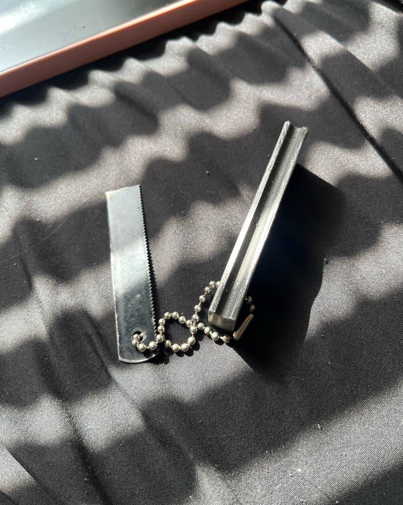 These two metal rectangles, one with a blade and one with an indented side: