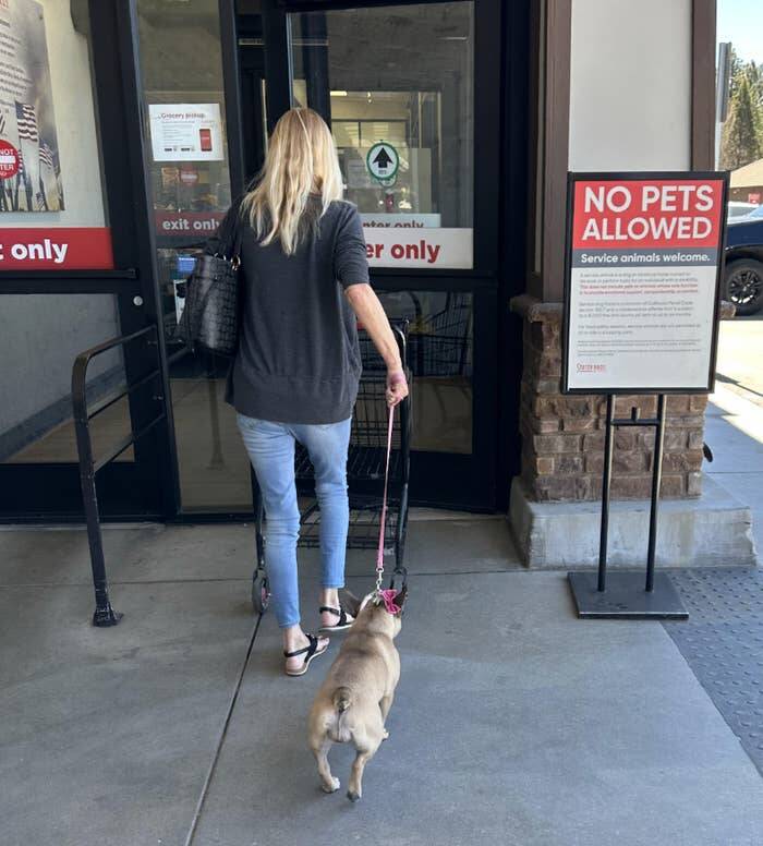 This grocery store customer who completely ignored the "NO PETS ALLOWED" sign: