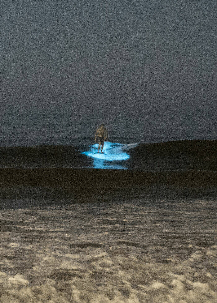 "Surfer At Moonlight Beach In San Diego Catching Glowing Waves During A Stunning Bioluminescent Bloom. Shot With A Sony A7sii (F/1.2, 1/200, Iso 20,000)."