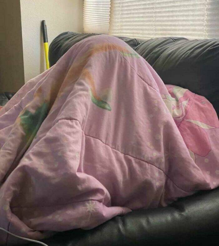 "I Am Very Talkative In The Mornings And My Husband Is Not. I Try To Remember This, But One Morning, I Was Talking And He Put This Comforter Over His Head. He Said “This Is Fort No Wife, When I’m In Here, I Need Quiet”. Made Me Laugh So Hard. Love This Man"