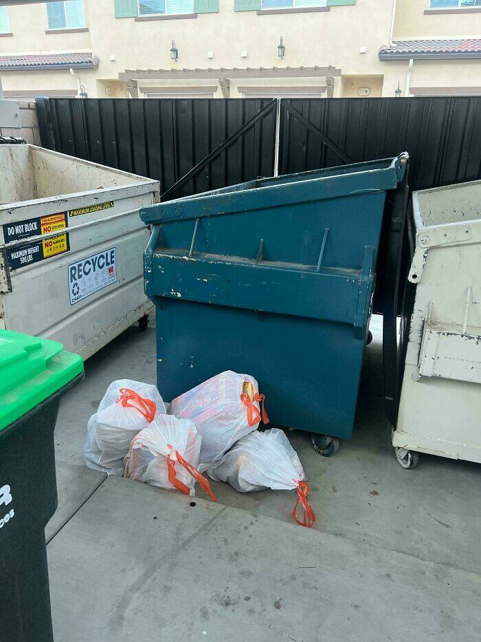 "Someone Walked To The Trash Enclosure Just To Not Put Their Bags In The Bin"