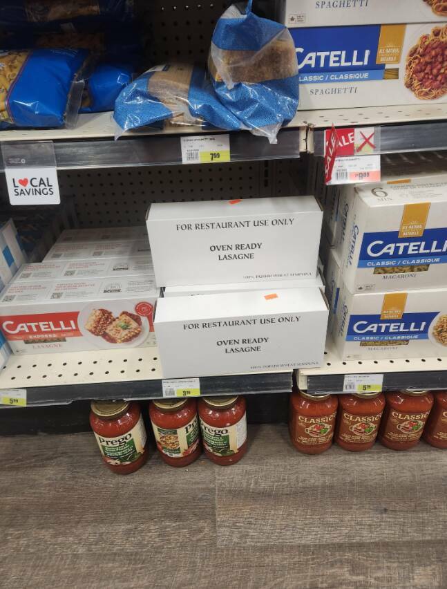 "Local bodega reselling lasagna meant for comercial use"