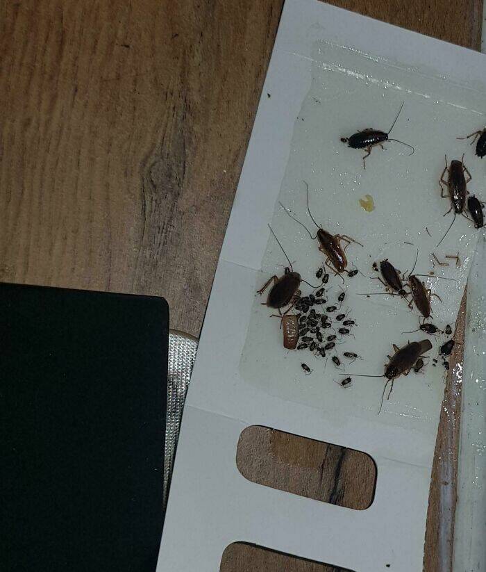 "So, here's the deal. I found a roach a few times inside my work laptop when I got home..it couldn't come from my house and a few other colleagues complained of the same issue. I decided to prove him wrong, bought a cheap 50c chinese sticky roach trap and left my laptop at work with this trap directly next to my laptop....this is the results after a weekend in the office. Not just roaches but the roach egg sack thingy hatched and those are the babies..."