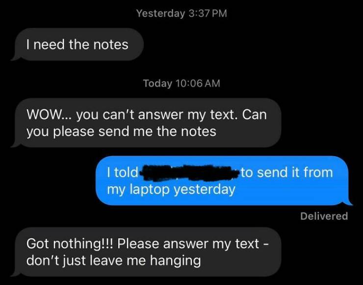 "Trying to tell myself her urgency isn’t my emergency. These notes aren’t even that important, and are actually ones SHE HERSELF is supposed to write."