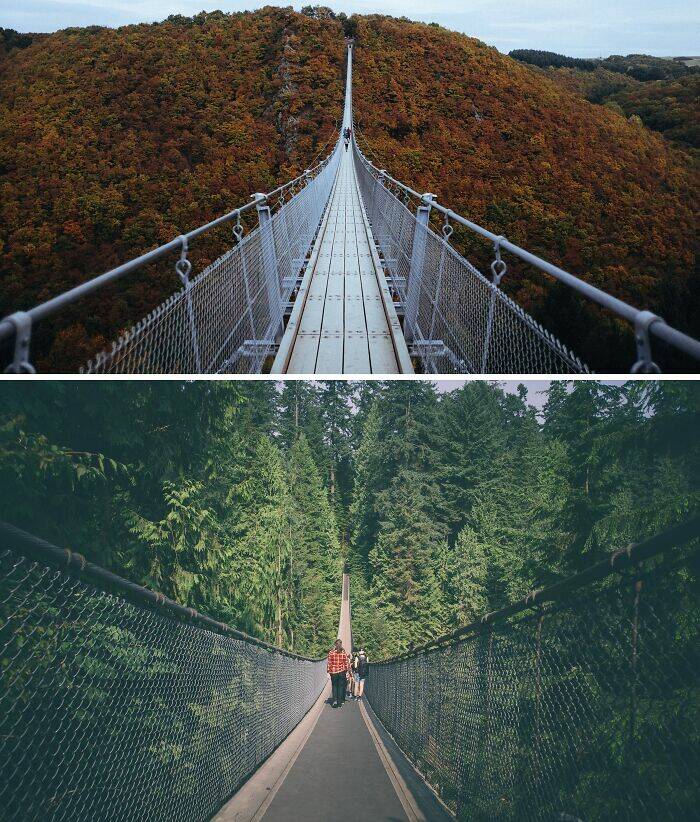 Geierlay Suspension Bridge, Germany And Capilano Suspension Bridge, Canada