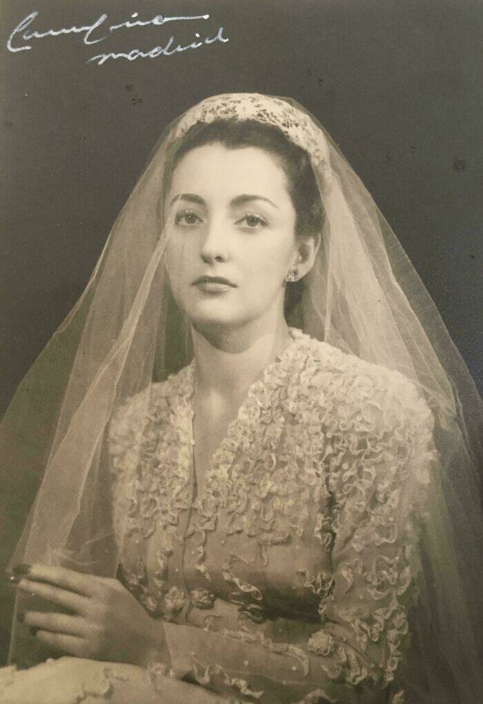 "My Grandmother With Her Wedding Dress, Designed By Balenciaga. 1947"