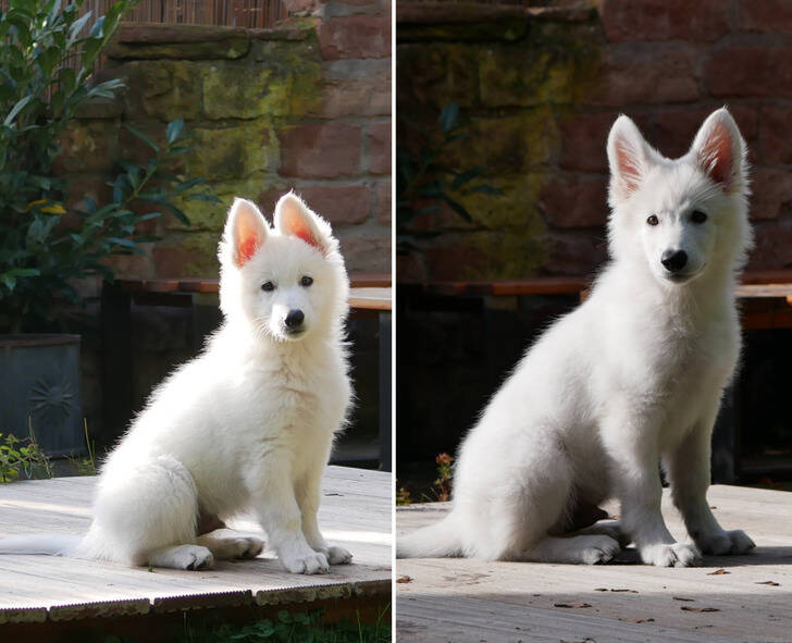 “My puppy at 8 and 12 weeks. He’s growing so fast.”