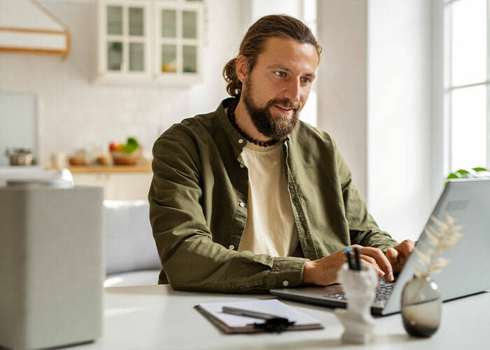 Person leaves apartment in morning.