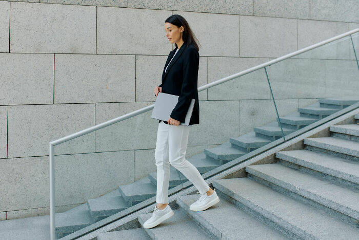 "Walking down the stairs. A slip and fall can break your neck."