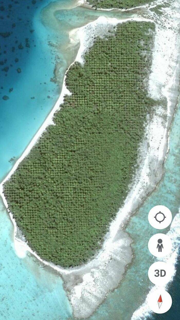 "Found This Weird Island, Anyone Know Why The Trees Would Be Laid Out In Such Straight Lines??"