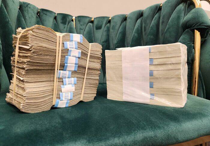 "Crisp Block Of One Dollar USD vs. A Circulated Stack"