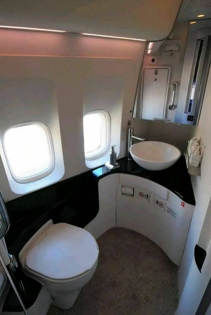 "Passengers flying first class on British Airways’ Boeing 747s have expressed concerns about a redesign that includes windows in some lavatories. One woman traveling to New York voiced her discomfort over the lack of blinds. A stewardess reportedly responded, “Madam, if someone is clinging to the side of this aircraft at 35,000 feet, they’ve earned the view.''