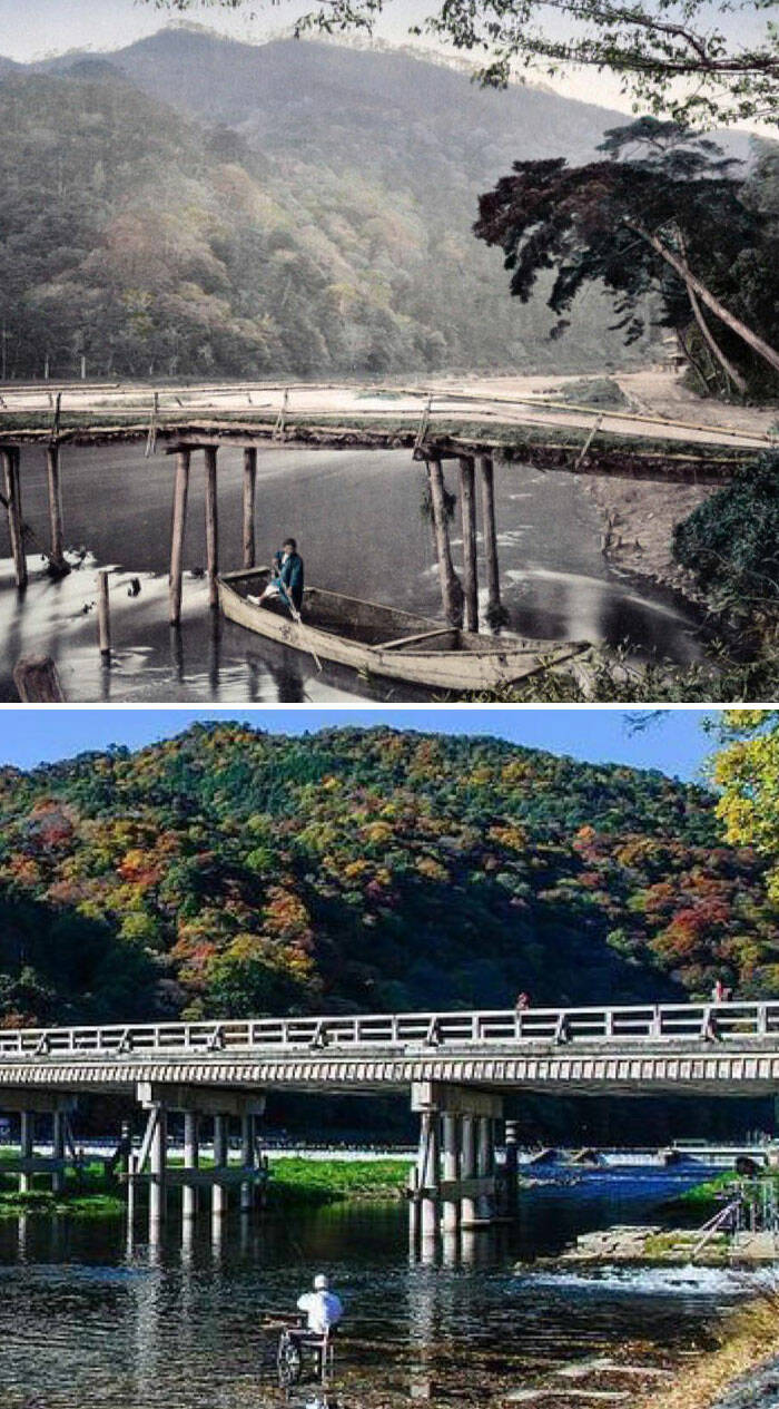 Togetsukyo Bridge, Kyoto, Japan. 1870 vs. Now