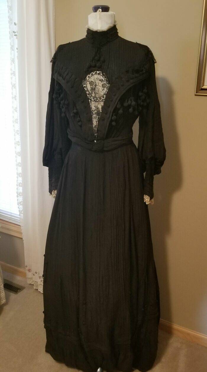 "A Black Wedding Dress From The 1860's That My Grandma Displays In Her House. She Said It Belonged To A 20yo Woman Marrying An 83yo"