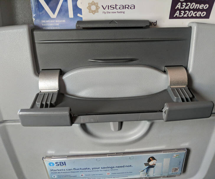 "My flight has this tiny tray to hold your phone on—I've never seen anything like it before!"