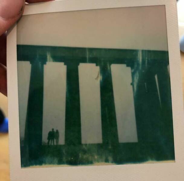 "We asked a stranger to snap a picture of us with a polaroid camera. A few minutes later, when the photo developed, we were both shocked. In the picture, you can clearly see my girlfriend and me standing on the left side of the frame. But on the right, well, there's something else entirely. It's difficult to make out many details, thanks to the polaroid format, but there's definitely a figure standing right next to me, possibly even slightly in front. We can't explain it. We're certain no one was there when the photo was taken. This whole thing has us freaked out a bit."