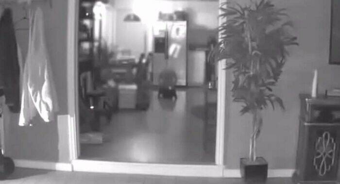 "Then one day when nobody was in the house, my sister got a camera notification. When she checked it, she found this. In front of the fridge, it looks like a small chair at first, but then she told me there’s not a chair there, they don’t have a chair like that. The box thing is a raised dog food/water station it’s over the top of it. I don't know what the thing on the left is, my sister never figured it out either.After she saw the picture she got a little witchcrafty and she made a protection jar (a combination of herbs and a crystal and sealed it in black candle wax). She burned sage in and outside the master bedroom. She said that made everything in the bedroom to stop, but it didn’t stop it in any other room.She dropped this information months after they had moved out for reasons unrelated to the haunting. I was only over there once, and I thought it maybe felt a little weird, but I was also over there alone with my 1-year-old nephew, and it was pouring rain, but I never saw anything paranormal."