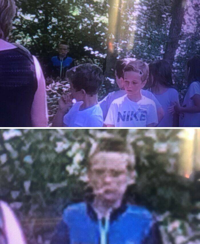 "As you can see, he doesn’t look like any other kids in the picture, his face looks skinny, and he looks old and angry at the same time. I wanted to share it because I’ve been thinking about it for a while. Did he die in the forest, or did he get lost? I’ll actually never know, but that’s the best ghost picture we caught."