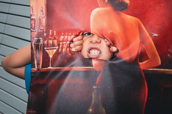 Is ripping through paintings with your stupid face some kind of new idiotic trend? Some kind of ersatz 'artistic' depth for Instagram? Morons.