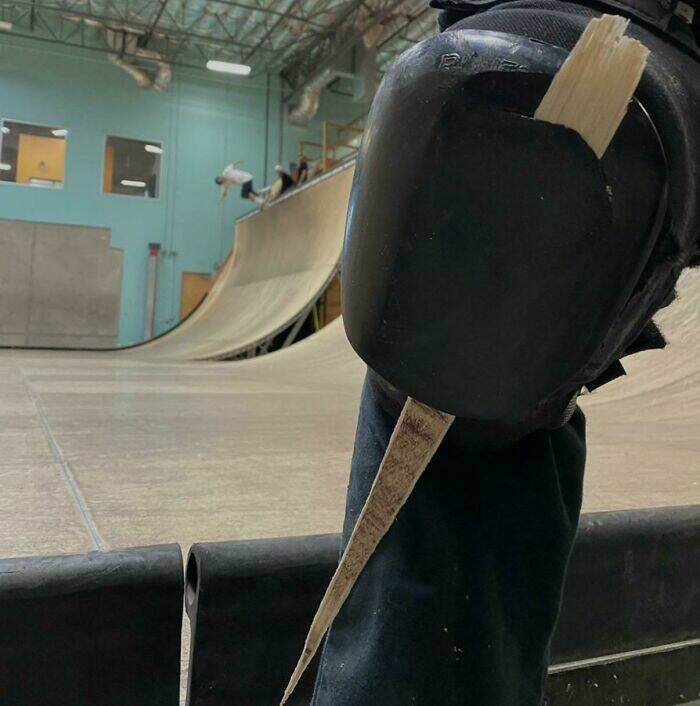 "Knee Pad Catches Small Splinter"