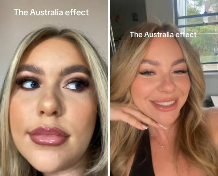 Saw this on several sites, and no matter how many or few words, it is just people taking fancy and less fancy pics. Theres no evidence these are before or after or how long between. It could be the next morning or right after a shower.