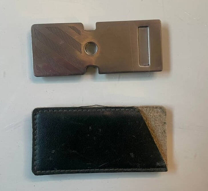 “Found this at my internship. It is a relatively small, metal plate.”